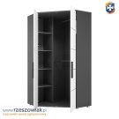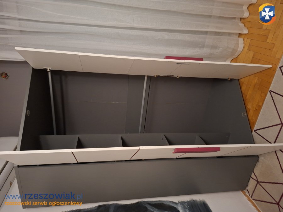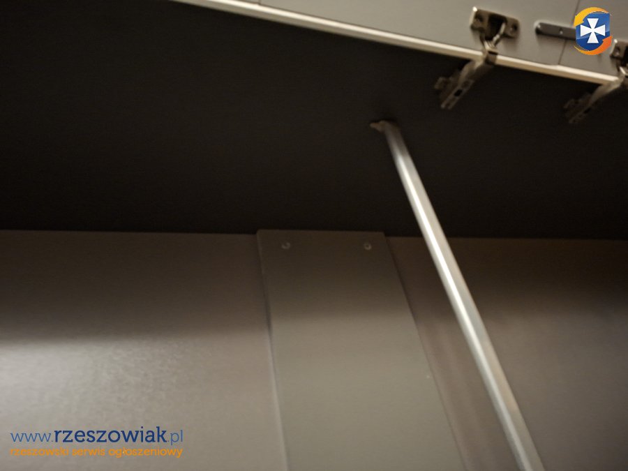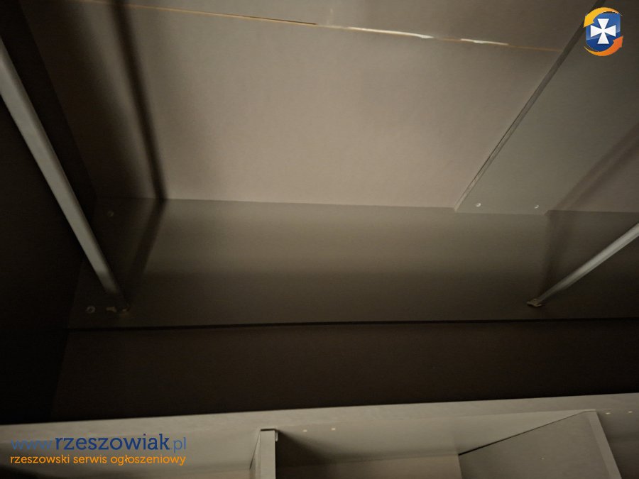Stan: używany, jest w częściach do samodzielnego złożenia. Szafa posiada 2 drążki oraz boczne półki.