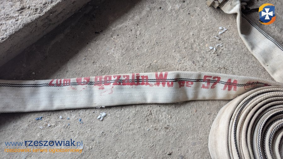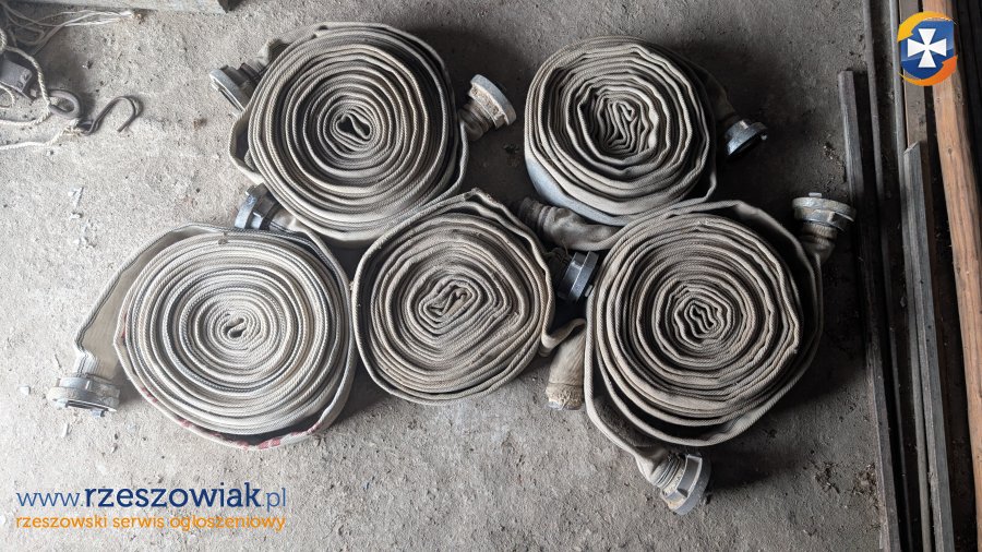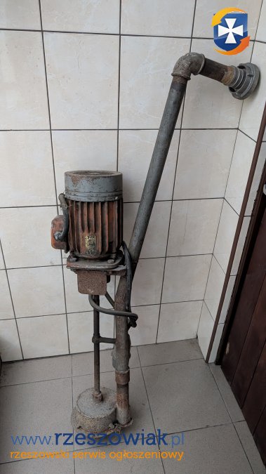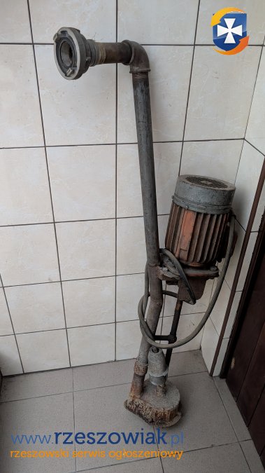 Pompa wałowa z silnikiem 1,1 kW 380V. W komplecie 5 węży strażackich 2 cale o długości 20m każdy.