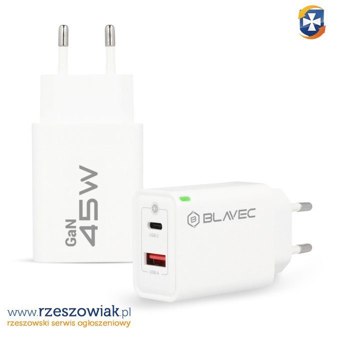 Zapewnia moc 45W, co umożliwia szybkie ładowanie urządzeń, nawet tych o większym zapotrzebowaniu energetycznym, w krótkim czasie.