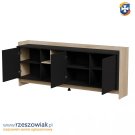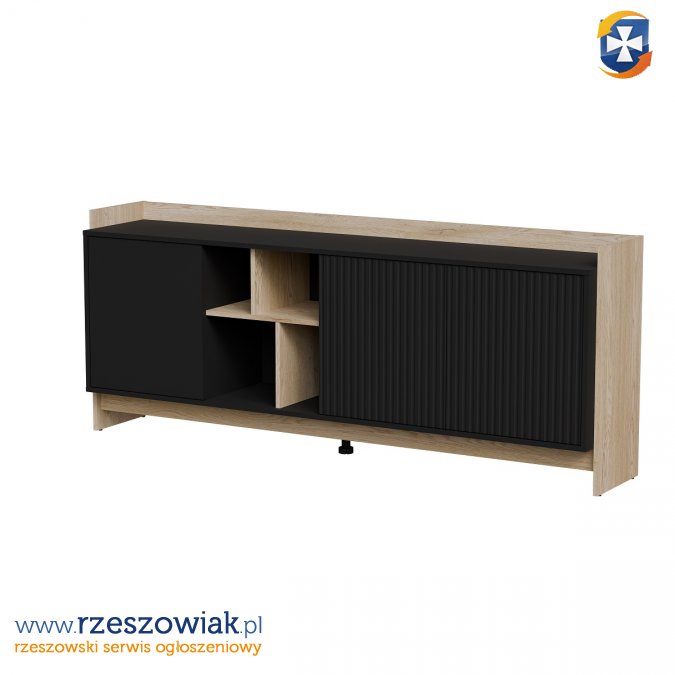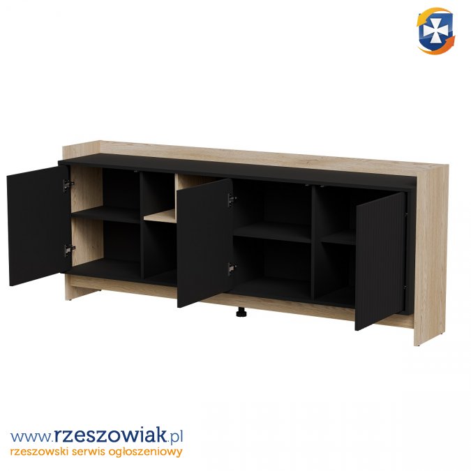 Czarne frezowane meble do salonu w połączeniu z dębem Cremona to stylowe i nowoczesne rozwiązanie. Frezowane fronty dodają meblom elegancji i unikalnego charakteru, natomiast połączenie z ciepłym odcieniem dębu Cremona nadaje wnętrzu przytulności i naturalnego wyglądu. Takie meble idealnie pasują do nowoczesnych wnętrz.