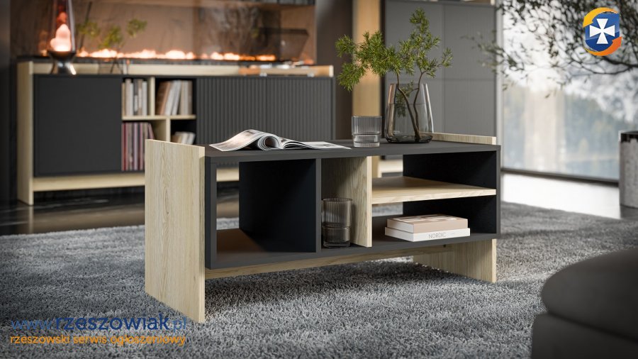 Czarne frezowane meble do salonu w połączeniu z dębem Cremona to stylowe i nowoczesne rozwiązanie. Frezowane fronty dodają meblom elegancji i unikalnego charakteru, natomiast połączenie z ciepłym odcieniem dębu Cremona nadaje wnętrzu przytulności i naturalnego wyglądu. Takie meble idealnie pasują do nowoczesnych wnętrz.