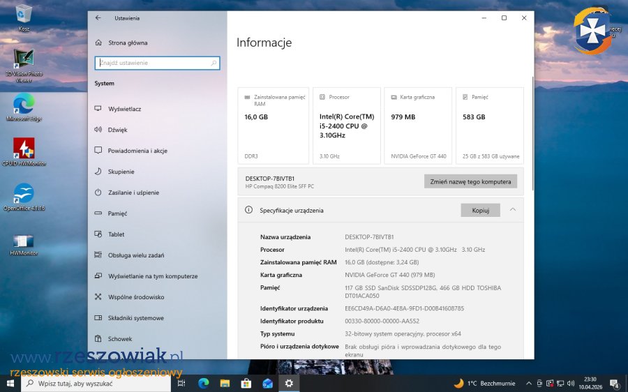 Kody licencyjne do Windows 7 Pro oraz Windows 10 Pro (aktualnie zainstalowany).