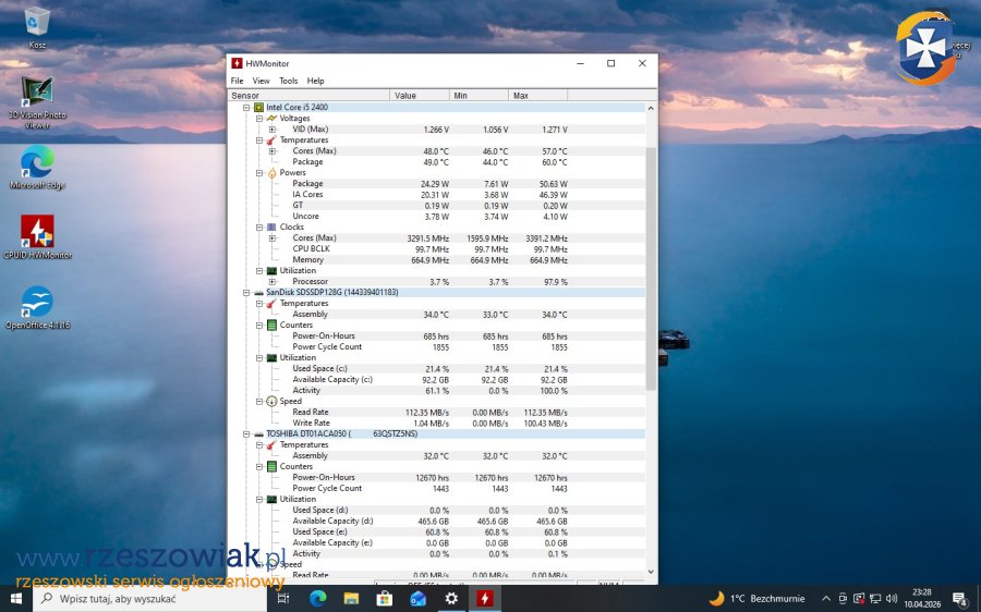 Sprzęt sprawny w załączniku screeny z uruchomionego systemu.