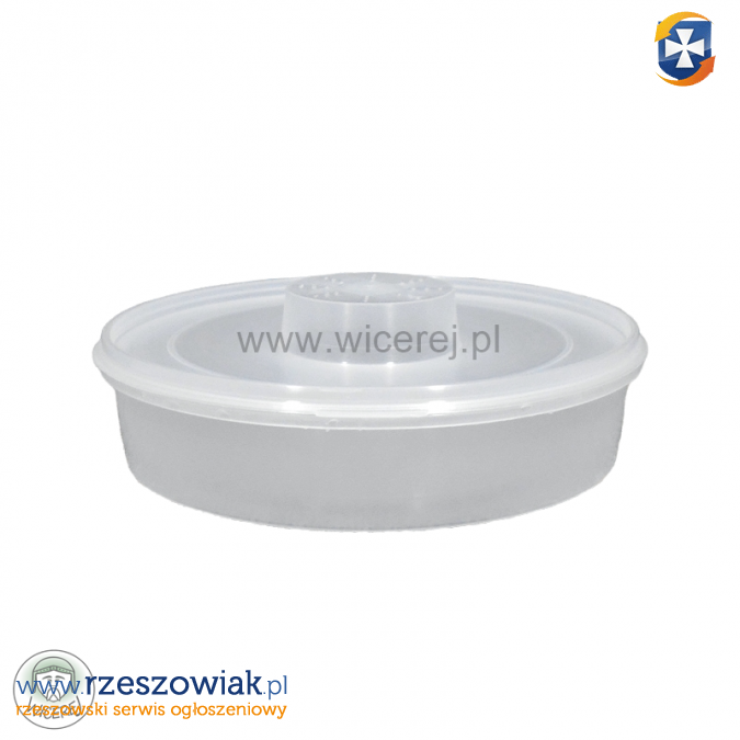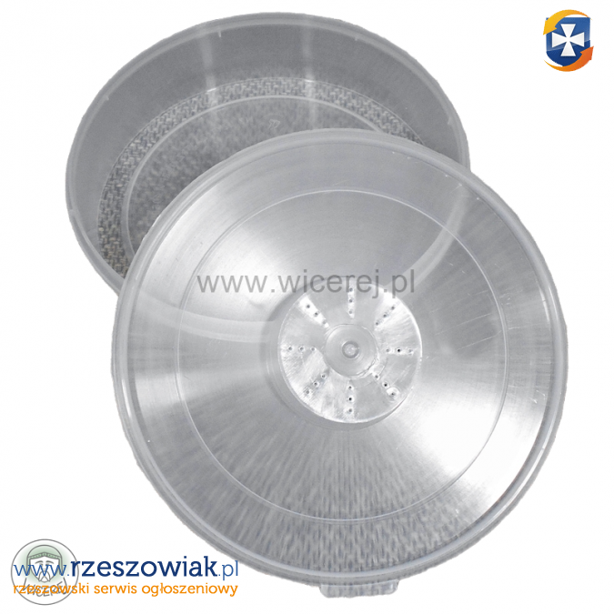 Posiadam w sprzedaży nowe podkarmiaczki, dokarmiaczki wiaderkowe z pokrywą o pojemności 1,8 litra. Poidło jest wykonane z tworzywa sztucznego. Składa się z pojemnika głównego oraz pokrywki (do pokrywki jest przymocowany kubeczek podkarmiający). Podkarmiaczkę montuje się do góry dnem, w powałce ula na pierścieniu montażowym. Podkarmiaczka dzięki uniwersalnym wymiarom będzie pasowała do większości uli. Jej wysokość całkowita to około 7,5cm, średnica góry 25cm, średnica dołu 23cm, średnica otworu około 7,5cm, pojemność 1,8 litra.