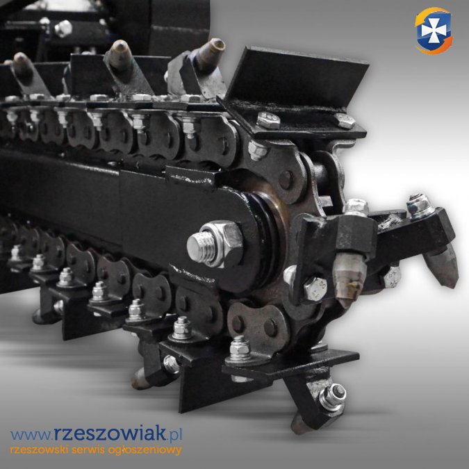 Łańcuch kopiący wyposażony jest w wymienne zęby wykonane z węglika spiekanego o dużej odporności na ścieranie.