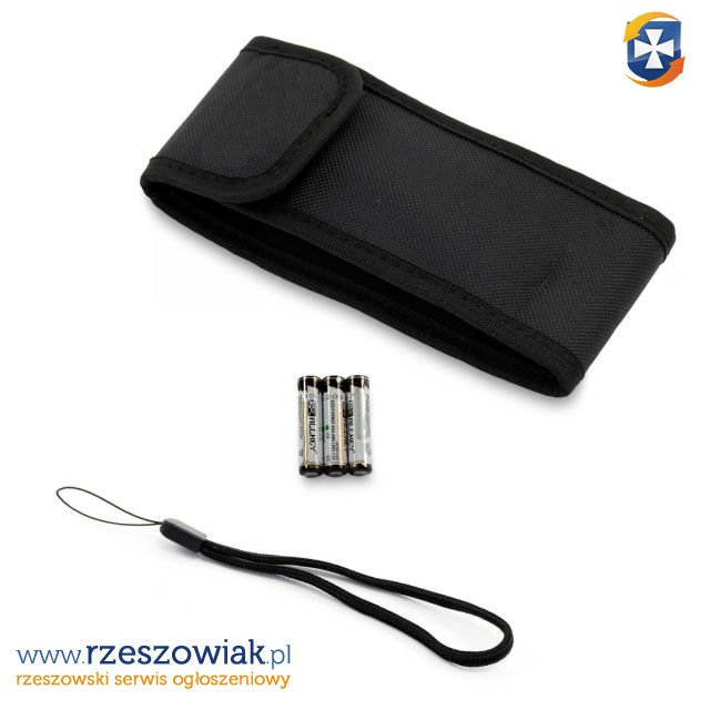 W zestawie znajduje się pokrowiec ze smyczą oraz komplet baterii.