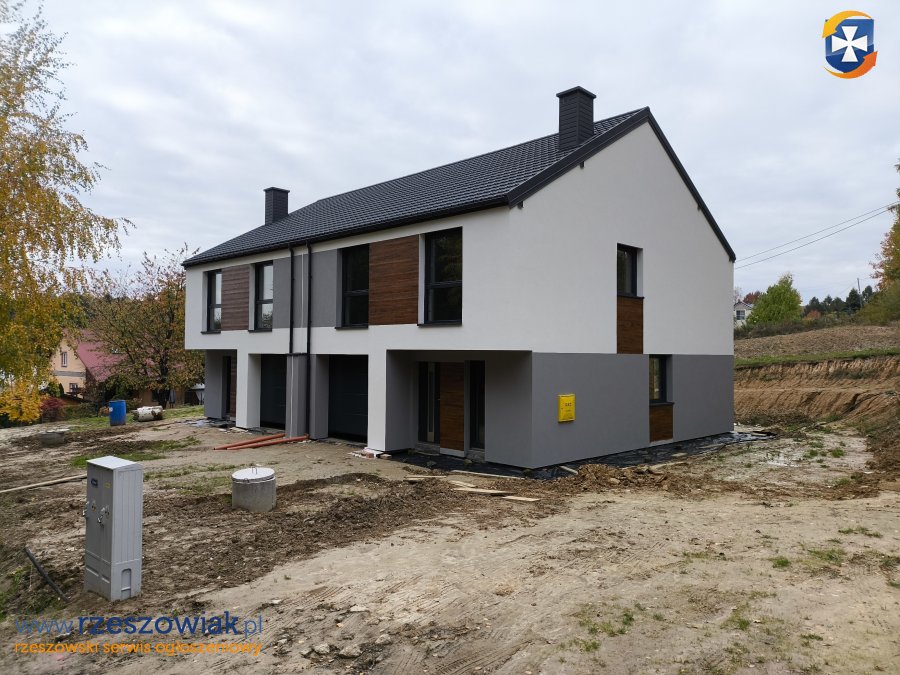 Sprzedam dom typu bliźniak składający się z dwóch lokali o powierzchni 136 m2 każdy usytuowany na działkach 7,18 ar (bud. A) oraz 6,76 ar (bud. B) przy drodze asfaltowej, w sąsiedztwie drzew, w cichej i spokojnej okolicy w miejscowości Hermanowa - 10 min pieszo od Przylasku. Dom budowany w 2025 r zgodnie z projektem Archon - dom w narcyzach 6 (B)
