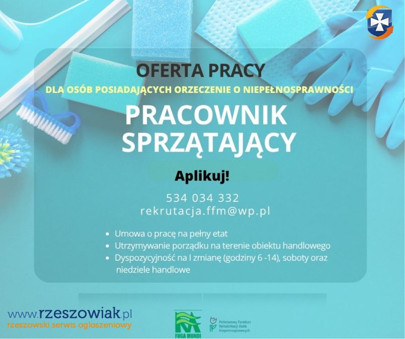 Poszukujemy osoby do sprzątania na terenie obiektu handlowego w Krasnem.