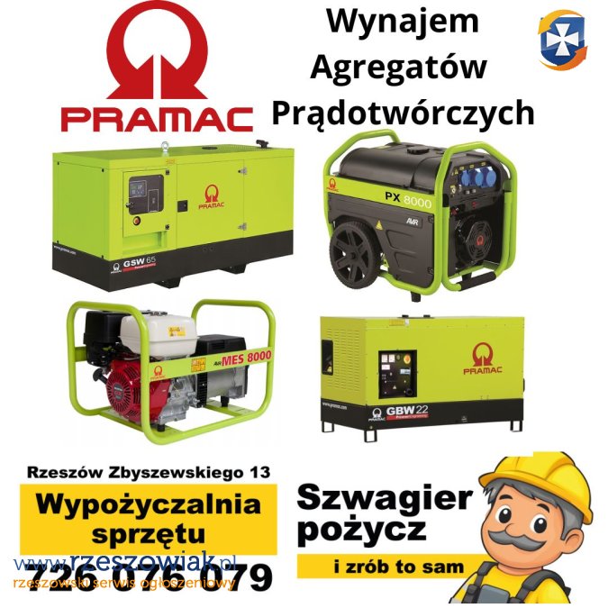 Nasza wypożyczalnia oferuje szeroki wybór agregatów prądotwórczych o różnej mocy, idealnych do zasilenia każdego przedsięwzięcia! Od małych urządzeń do domowych zastosowań, po potężne agregaty do dużych wydarzeń i placów budowy.
