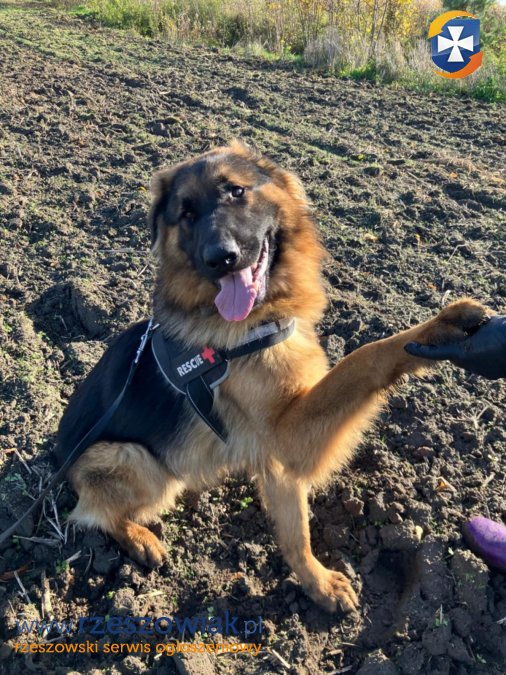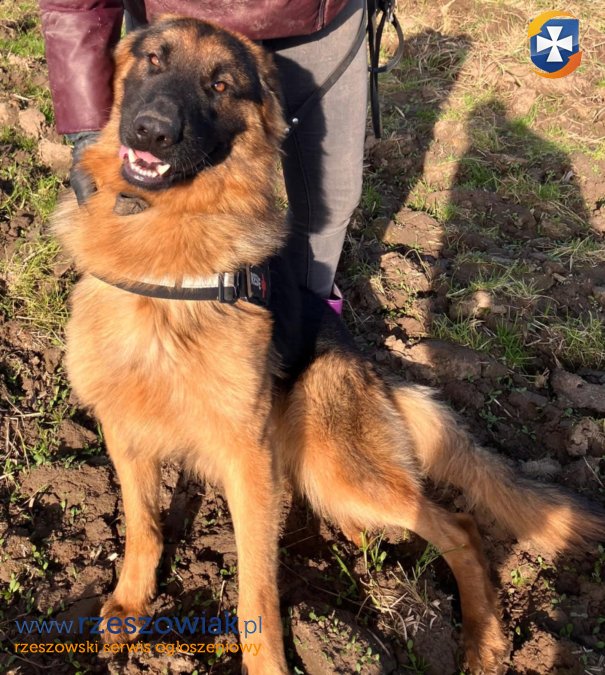 To młody chłopak w typie owczarka niemieckiego. Ma w sobie cały ich urok: mądrość w oczach, ogromne serce i chęć bycia blisko człowieka.