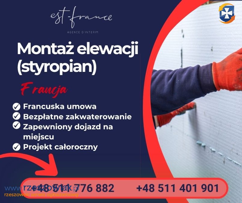 PRACA WE FRANCJI - MONTAŻ DOCIEPLEŃ (STYROPIAN)