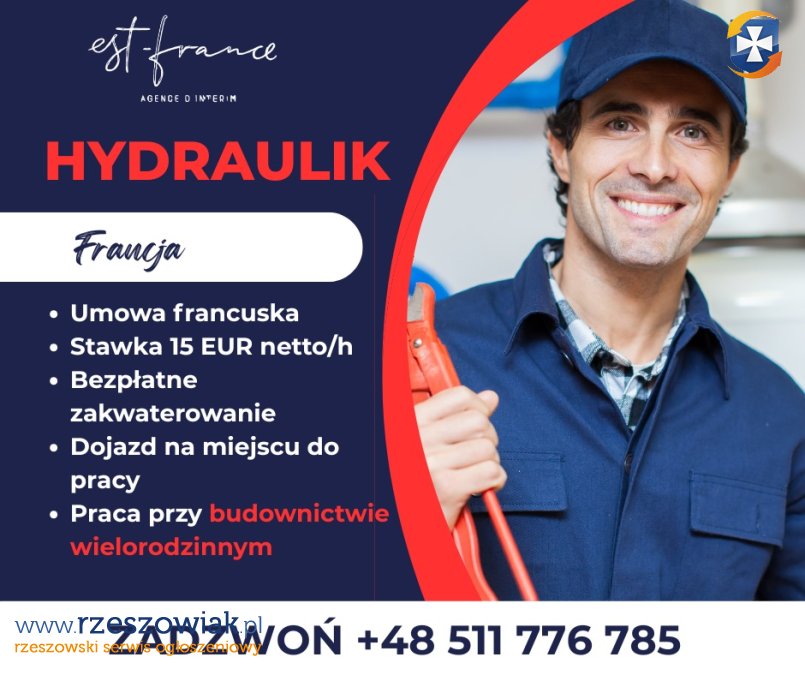 Francuskie przedsiębiorstwo specjalizujące się w instalacjach hydraulicznych, grzewczych, wentylacyjnych, klimatyzacyjnych oraz chłodnictwie przemysłowym poszukuje doświadczonych hydraulików do pracy przy budownictwie wielorodzinnym.