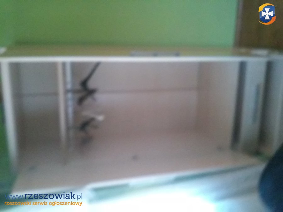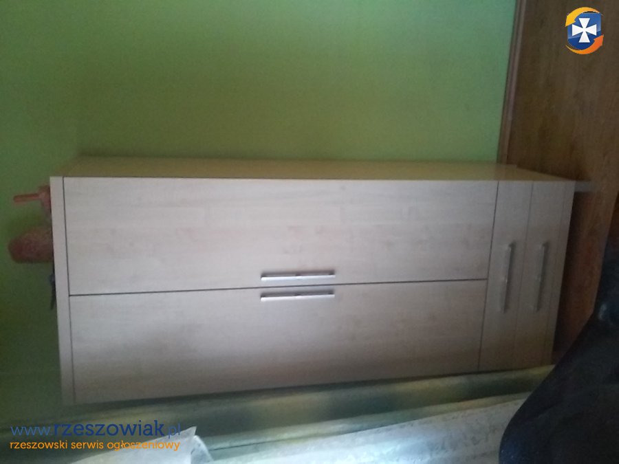 Praktyczna szafa dwudrzwiowa, wykonana z trwałego materiału. Posiada dwie szuflady, które zapewniają dodatkową przestrzeń do przechowywania. Szafa jest w dobrym stanie, gotowa do użytku w Twoim domu.