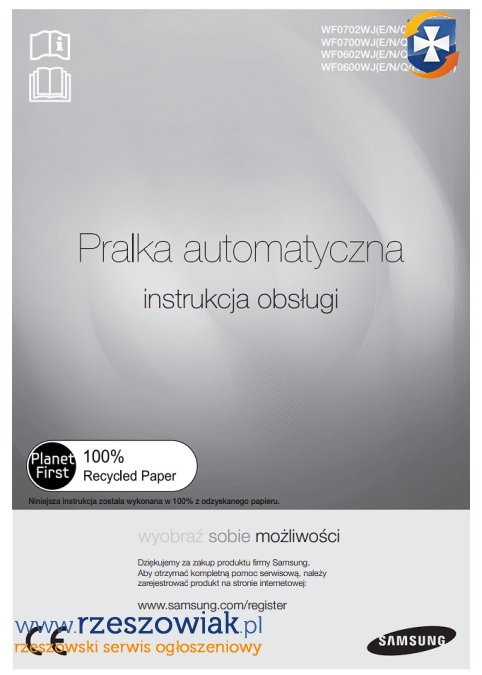 W komplecie wąż odpływowy, wąż doprowadzający wodę, instrukcja.