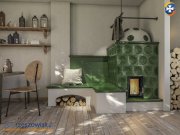 Prawdziwy akumulacyjny piec kaflowy nowej generacji, z obszernym spektaklem ogniowym, ma same zalety, a praktycznie żadnej wady. Nie wysusza nadmiernie - jak kominek konwekcyjny - powietrza, a więc nie przyczynia się do uciążliwego wysychania błony śluzowej jamy ustnej i drapania w gardle, nie wywołuje chronicznego kaszlu i duszenia się, charakterystycznego dla posiadaczy kominków w sezonie grzewczym, nie osłabia odporności organizmu człowieka. W jego obecności nie odczuwa się pieczenia oczu, typowego dla gwałtownej konwekcji. Nie brudzi, jak kominek, ścian i sufitu przypieczonym kurzem, nie wywołuje żadnych ruchów powietrza w pomieszczeniu, nie wzbudza kurzu z odchodami roztoczy, a przez to nie alergizuje domowników. Jest najprzyjaźniejszym dla człowieka urządzeniem grzewczym, gwarantem zdrowego naturalnego ciepła. Prawdziwy piec kaflowy, w przeciwieństwie do konwekcyjnego kominka z metalowym wkładem grzewczym i piecyka kominkowego, nie tylko, że nie wywołuje ruchów przegrzewanego i wysuszonego powietrza, ale emituje ze swojego płaszcza kaflowego przyjazną dla człowieka energię, w postaci zdrowego ciepła promieniowania podczerwonego, tożsamego z promieniowaniem cieplnym Słońca. Dlatego jest ono tak łatwo przyswajalne przez organizm człowieka, dogłębnie przetwarzane przez niego i wykorzystywane, tym bardziej, że człowiek wydziela ciepło tak samo w postaci promieniowania, więc przyswojenie sobie tego rodzaju ciepła jest dla niego naturalne. Ciepło promieniowania nie oddziałuje tylko powierzchniowo na ciało, tak jak ciepło konwekcyjne, przegrzanego i wysuszonego powietrza z kominka (które parzy w skórę), tylko - w postaci promieniowania elektromagnetycznego - przenika przez skórę w głąb ciała i (rozprowadzane przez ogrzaną krew) przekazuje ożywcze impulsy do wszystkich narządów i zakątków całego organizmu człowieka. Odczuwamy je głęboko w sobie, podobnie jak promieniowanie słoneczne. Tego typu penetrujące naturalne ciepło - delikatne, błogie i łagodnie rozleniwiające - postrzegane jest jako niezwykle przyjemne przez każde bez wyjątku stworzenie, nie tylko przez człowieka. Od rozgrzanego kominka - i nieprzyjaznej aury wokół niego - uciekamy w najdalszy kąt salonu, natomiast do rozpalonego kaflowego cielska pieca chętnie tulimy się, przylegamy całym ciałem, chłoniemy energię, działającą stymulująco na wolne zakończenia nerwowe wegetatywnego układu nerwowego, wyciszając, relaksując i regenerując ciało i umysł. Podczerwień niweluje skutki zimowej depresji, pomaga zwalczyć stres. Na rozgrzanym kaflowym przypiecku, napiecku czy zapiecku chętnie regenerujemy swoje siły witalne. Prawdziwy piec kaflowy zapewnia przytulną atmosferę, relaksacyjny wypoczynek, swobodę oddychania i smakowity sen. Mówi się nawet, że wytwarza tzw. naturalną klimatyzację piecową. Kto przebywał przez jakiś czas z prawdziwym piecem kaflowym, ten zawsze będzie już tęsknił za jego aksamitnym ciepłem. Z tego też względu, nie tylko budowany jest w salonie, ale też w sypialni, a nawet w łazience lub w coraz modniejszych pokojach kąpielowych. Od kominka konwekcyjnego jest zdrowszy, wielokrotnie ekonomiczniejszy w użytkowaniu i dużo bardziej higieniczny. Jest ciepłym przyjacielem całych rodzin, jak i osób samotnych. Przystosowany do postawienia w domach energooszczędnych z rekuperacją - powietrze do spalania pobiera bezpośrednio z zewnątrz, nie przegrzewa, jak kominek konwekcyjny, gwałtownie pomieszczeń. Zdrowe ciepło promieniowania uwalnia z płaszcza kaflowego wolno i równomiernie. Od niskotemperaturowej pompy ciepła nie uzyskamy wielkopłaszczyznowego wysokotemperaturowego ciepła promieniowania. Nie ukoi nas ona hipnotycznym ogniem. Dodatkowy akumulacyjny piec kaflowy zaspokoi wszystkie zmysły i potrzeby egzystencjonalne domowników takiego domu i złagodzi skutki uboczne rekuperacji. Jest sterowany automatyką w 100%. Gdy zawiedzie główne ogrzewanie domu (awaria, brak prądu), jest bardzo dobrym zabezpieczeniem, gdyż może pracować bez automatyki. Będąc opalany odnawialnymi źródłami energii, jest gwarancją ekologicznego bezpieczeństwa energetycznego każdej rodziny. Zmniejsza zależność od zewnętrznych dostaw surowców energetycznych. Opał jest zawsze łatwo dostępny z lokalnych lasów. W opcji wymiennik wodny do CO. Z wężownicą schładzającą przystosowany do pracy w zamkniętej instalacji wodnej z pompą ciepła, kotłem gazowym, na pellet. Długotrwałą i stabilną pracę pieca akumulacyjnego i systemu grzewczego zapewnia jego duża ceramiczna pojemność cieplna i automatyka. On nigdy nie stygnie przez cały sezon grzewczy. Jest na drewno liściaste (także iglaste â tańsze, łatwiej dostępne) i brykiety drzewne. Jego konstrukcja zapewnia całkowite i zupełne spalanie drewna (również z wymiennikiem wodnym) przy minimalnej emisji spalin (braku dymu). Nie truje środowiska. Spełnia wymagania Ekoprojektu i surowe normy europejskie (od stycznia 2022 r. każdy nowo wybudowany piec, kuchnia lub kominek musi być zgodny z Ekoprojektem 2022). Posiada klasę efektywności energetycznej A+. Można z nim budować stabilne hybrydowe instalacje grzewcze ogrzewające cały dom (akumulacja+woda+DGP), dostosowane do indywidualnych potrzeb. Doskonale sprawdza się w starych - mniej ocieplonych lub nieocieplonych - budynkach (także wielorodzinnych), w których ogrzewanie gazowe, a coraz częściej i pompą ciepła, jest drogie i nieefektywne. W zimnych murach kamienic jest synonimem przytulności. Gdy będzie posiadał piekarnik z podwójną szybą, wyłożony szamotem, możliwe jest jego kulinarne wykorzystanie do przygotowywania całych obiadów. Piekarnik bez problemu rozgrzewa się do ponad 300°C! Z łatwością piecze nawet pizze i chleby. Może być usytuowany za ścianą (a piec w salonie), w przyległym pomieszczeniu, w ścianie grzewczej i w tamtym pomieszczeniu uży