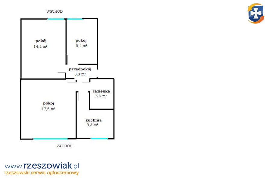 - mieszkanie trzypokojowe rozkładowe z wystawą okien na wschód i zachód