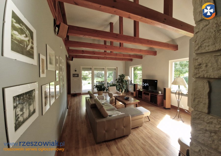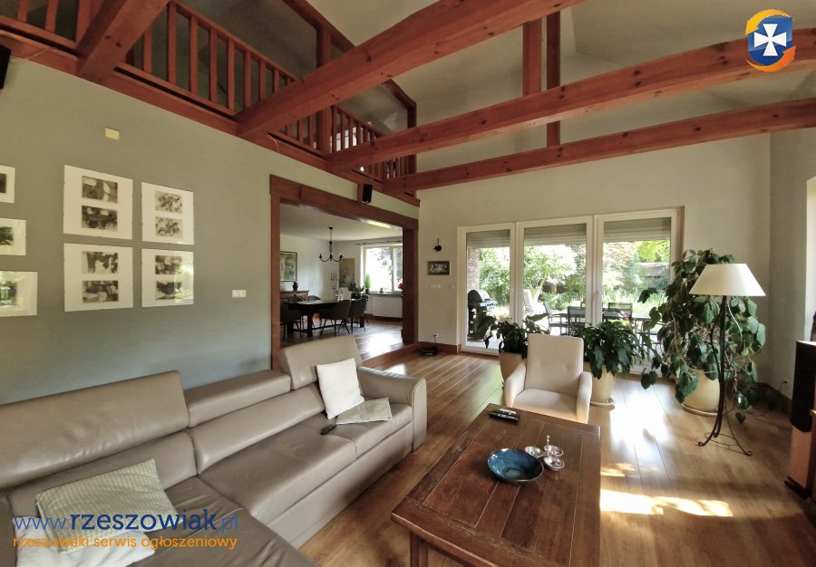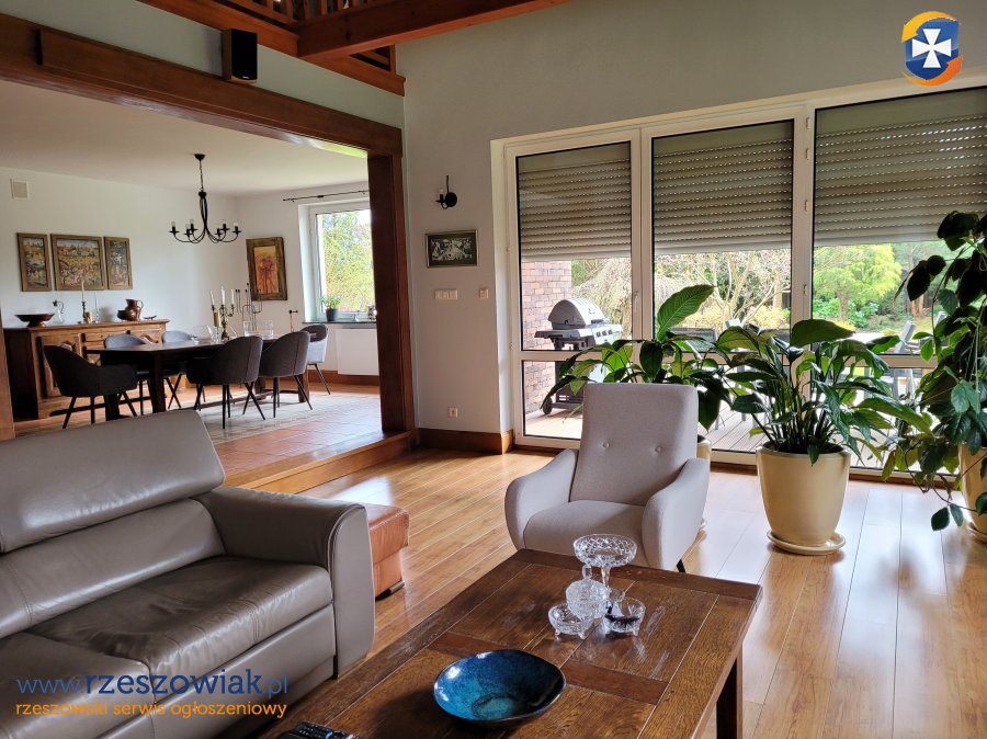 Dom bardzo zadbany z otwartą częścią salonu na jadalnię oraz antresolę. Dodatkowo przed salonem zadaszony taras oraz wyjście na ogród.