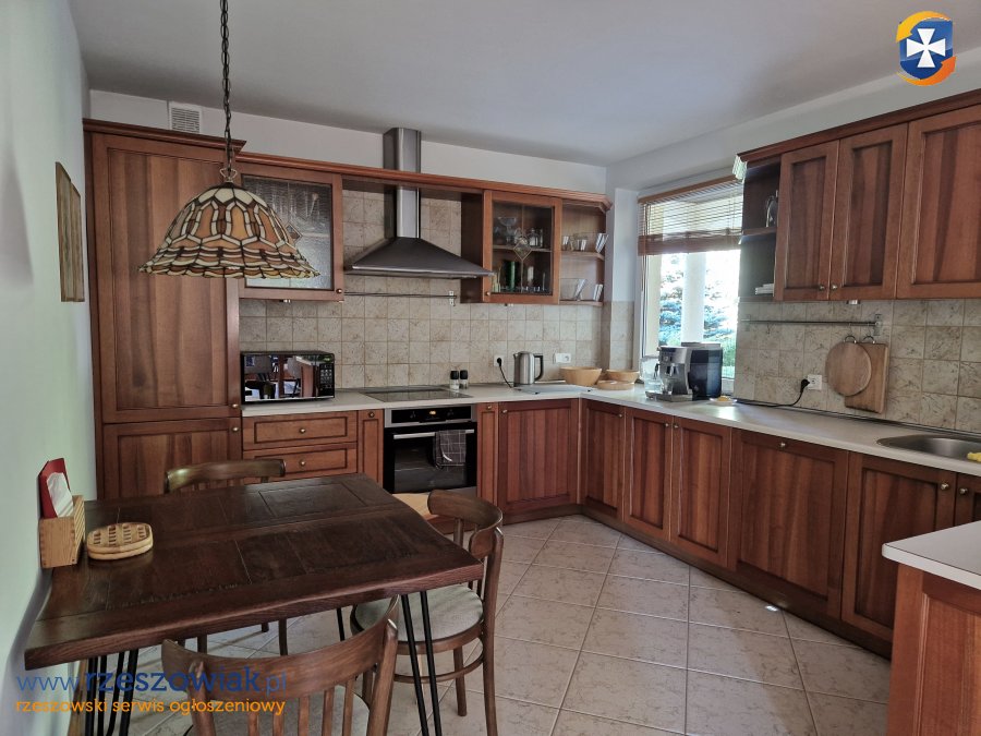 Nieruchomość bardzo zadbana z meblami w zabudowie, utrzymana w jasnej ciepłej kolorystyce z dodatkiem drewna.