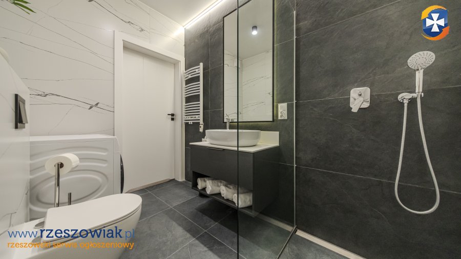 Mieszkanie znajduje się na 2 piętrze nowoczesnego apartamentowca w Zaczerniu, ze zjadem bespośrednio z ulicy Warszawskiej. Szybki dojazd zarówno do centrum Rzeszowa, jak i strefy ekonomicznej Jasionka.
