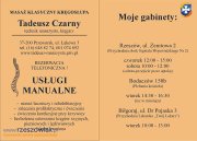 można liczyć na fachową poradę, szczególnie jeśli chodzi o problemy z kręgosłupem. Masaż leczniczy i rehabilitacyjny, zalecenia profilaktyczne ćwiczenia korekcyjne przy krzywicy -bezbolesne ustawianie kręgów szyjnych, piersiowych i lędźwiowych, biodra i ramiona.Terapia manualna porady zielarskie