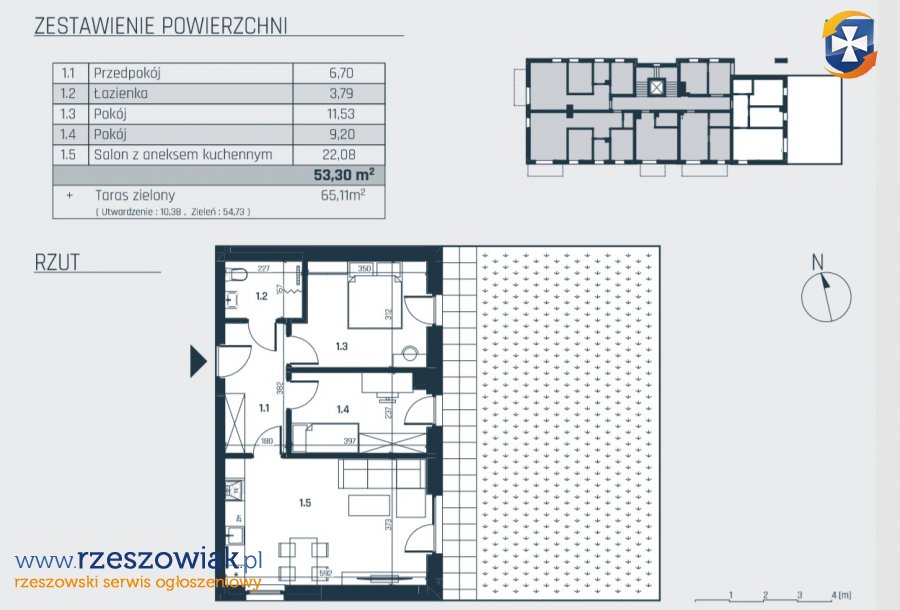 53.30m2- 3 pokoje, taras zielony o pow. 65.11m2 cena 580 970,00 zł