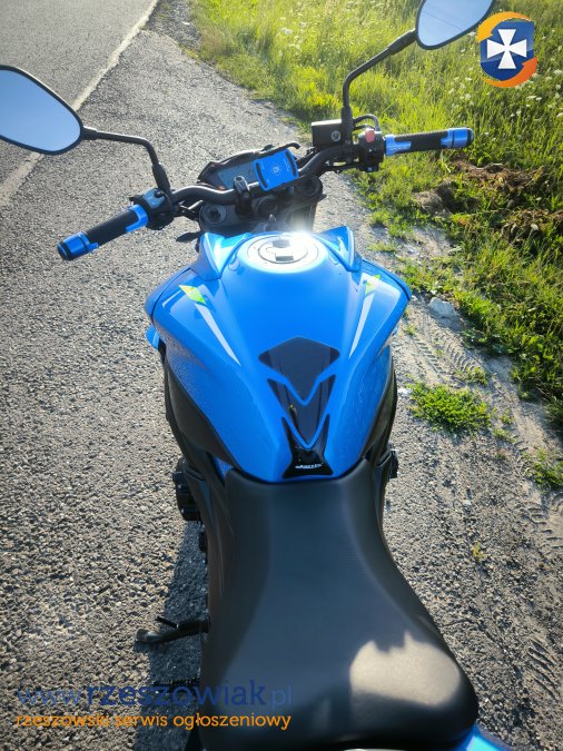 Motocykl ma założony sportowy tłumik firmy HURRIC o bardzo ładnym brzmieniu, łamane klamki