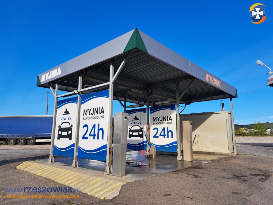 - myjnia samochodowa dwustanowiskowa o pow. 62,50 mkw. â konstrukcja stalowa, dach kryty blachą, posadzka betonowa z podziemnym separatorem na części stałe i olej,