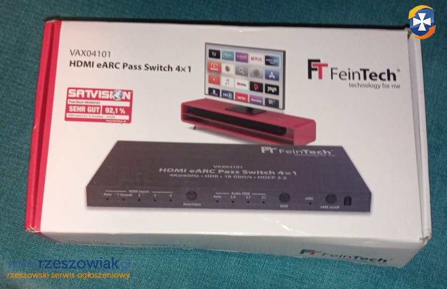 Przełącznik HDMI eARC Pass 4x1 firmy VAX04101 zapewnia płynne przełączanie między różnymi urządzeniami audio. Doskonały do podłączenia soundbara i innych akcesoriów audio do telewizora. Wspiera technologię eARC, co gwarantuje przesyłanie dźwięku o wysokiej jakości.