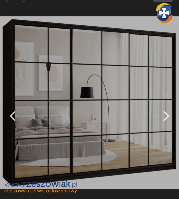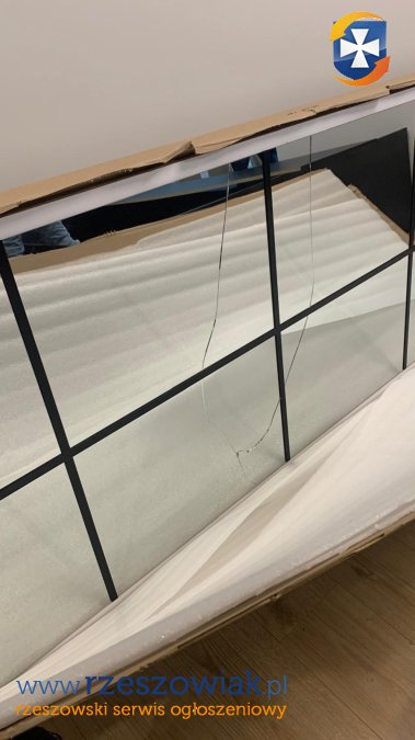 Przesuwne drzwi do szafy, zestaw 2 sztuk. Wymiary widoczne na zdjęciu. Uszkodzone szkoło, pęknięcie widoczne na zdjęciach. Odbiór osobisty ul. Ćwiklińskiej Rzeszów