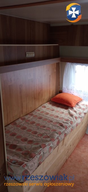 Przyczepa kempingowa na działkę,budowę, stróżówkę , domek ogrodowy bez prawa rejestracji. Przyczepa po jednej stronie posiada stół z z siedziskami , po drugiej,dwa oddzielne łóżka