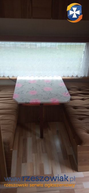 Przyczepa kempingowa na działkę,budowę, stróżówkę , domek ogrodowy bez prawa rejestracji. Przyczepa po jednej stronie posiada stół z z siedziskami , po drugiej,dwa oddzielne łóżka.