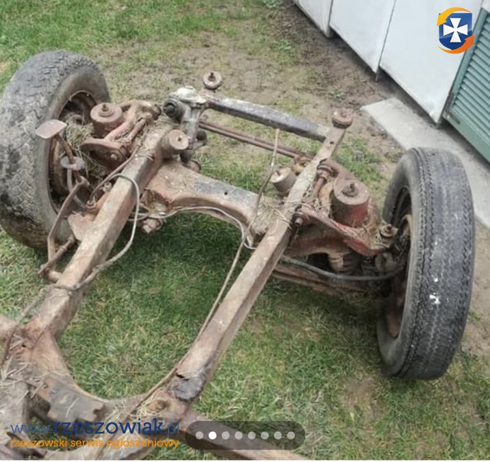 Ramę samochodu Skoda Spartak, Octawia (1957-1962) sprzedam. Rama jak na zdjęciach wraz z wałem oraz zawieszeniem i mostem oraz kołami.