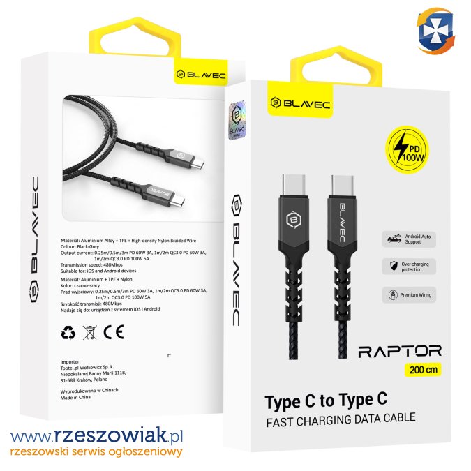 Kabel Blavec Raptor w pełni wspiera działanie systemów Apple CarPlay oraz Android Auto, co oznacza, że możesz bezproblemowo połączyć swój smartfon z systemem multimedialnym w samochodzie.
