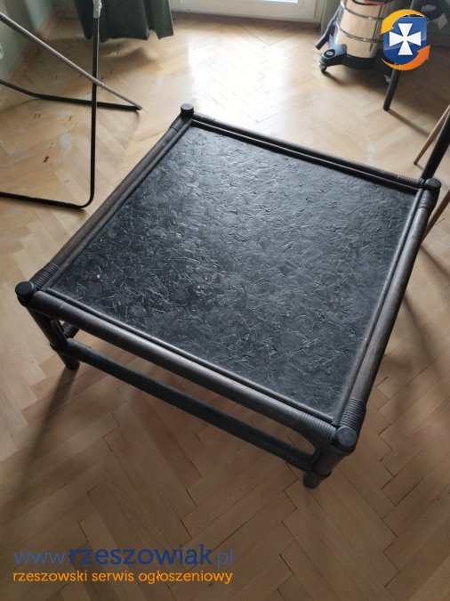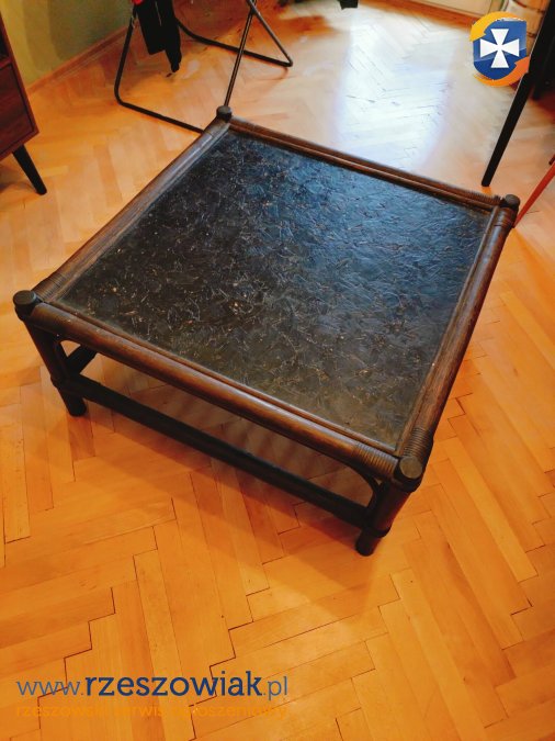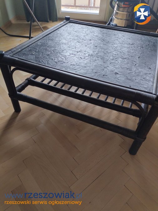 Ratanowy stolik kawowy o wymiarach 80x80cm i wysokości 40cm. Możliwy tylko odbiór osobisty, lokalizacja: okolice basenu Muszelka.