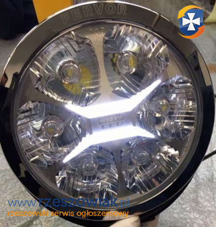 Drogowy reflektor z diodami LED i chromowaną ramką