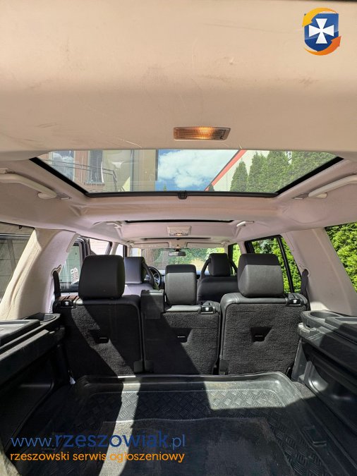Samochód w najbogatszej wersji wyposażenia HSE: automatyczna skrzynia biegów, klimatyzacja dwustrefowa, elektrycznie regulowane fotele z pamięcią, podgrzewane i wentylowane fotele, skórzana tapicerka, skórzana kierownica wielofunkcyjna, tempomat, elektrycznie ustawiane lusterka z pamięcią, przyciemniane szyby, elektryczne szyby przód i tył, pneumatyczne zawieszenie z regulacją wysokości, blokada mostu, tryby jazdy, podgrzewana przednia szyba, radio, nawigacja, światła przeciwmgielne, światła ksenonowe, felgi aluminiowe 18â, szyberdach, panorama i wiele innych. Zarejestrowany na 7 miejsc. Stan auta dobry.