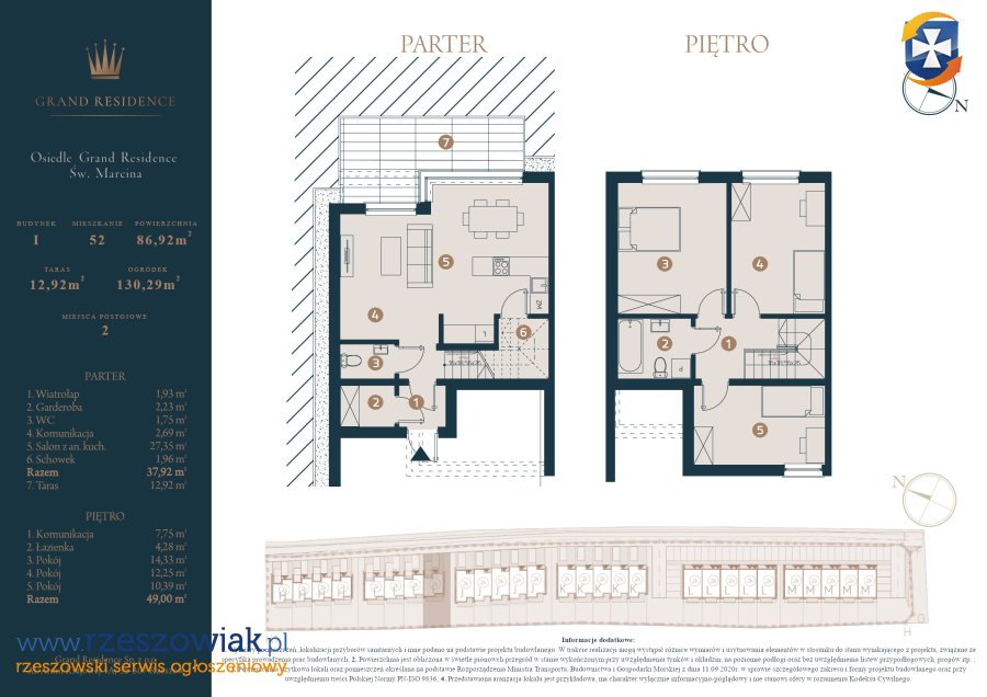 Ruszyła przedsprzedaż nowego osiedla premium zlokalizowanego w dzielnicy Słocina, przy ul. Św. Marcina. Zabudowa szeregowa bezpośrednio przy lesie , nietypowe zróżnicowane budynki tworzą charakterystyczne i jedyne takie osiedle w Rzeszowie. Do wyboru 3 różne warianty domów, bezpośrednie wyjście do lasu, osiedle ogrodzone i monitorowane, reprezentacyjna brama wjazdowa to tylko kilka udogodnień z wielu jakie mamy do zaoferowania. Zapraszamy do zapoznania się ze szczegółami inwestycji www.grandresidence.pl oraz kontakt telefoniczny 794 01 01 01