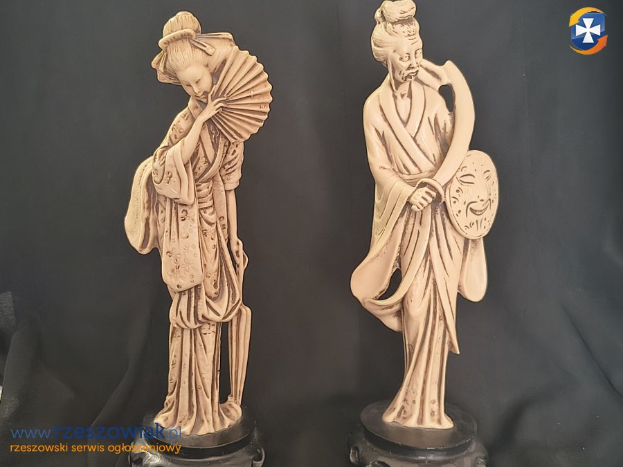 Samuraj i gejsza - rzeźby z alabastru. Idealna dekoracja do domu czy biura. Ciężkie, wysokość odpowiednio 33 i 34 centymetry. Niesamowite detale! Zapraszam do zakupu.