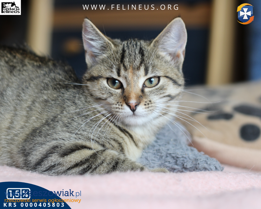 Sara to drobniutka bura koteczka urodzona w czerwcu 2025r. Do domu tymczasowego fundacji trafiła razem z siostrą. Kotka jest bardzo grzeczna, bez problemu dogaduje się z innymi kotami. Głaskana, mruczy bardzo głośno. Dla kotki szukamy bezpiecznego domu. Mile widziane zabezpieczenia okien/balkonu. Sara chętnie przeprowadzi się razem z siostrą, ale nie jest to warunek konieczny.