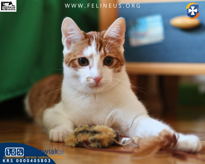 Selen to rudo biały kocurek urodzony w czerwcu 2025 r. Kociak trafił pod opiekę fundacji z licznym rodzeństwem. Chłopak super dogaduje się z kotami. Lubi obecność człowieka, chętnie bawi się z nim i towarzyszy. Selen szuka stałego domu. Chętnie zamieszka z którym bratem lub siostrą. Lub zaprzyjaźni z innym kotkiem. Dla Selena szukamy domu niewychodzącego. Z zabezpieczonymi oknami i balkonem.