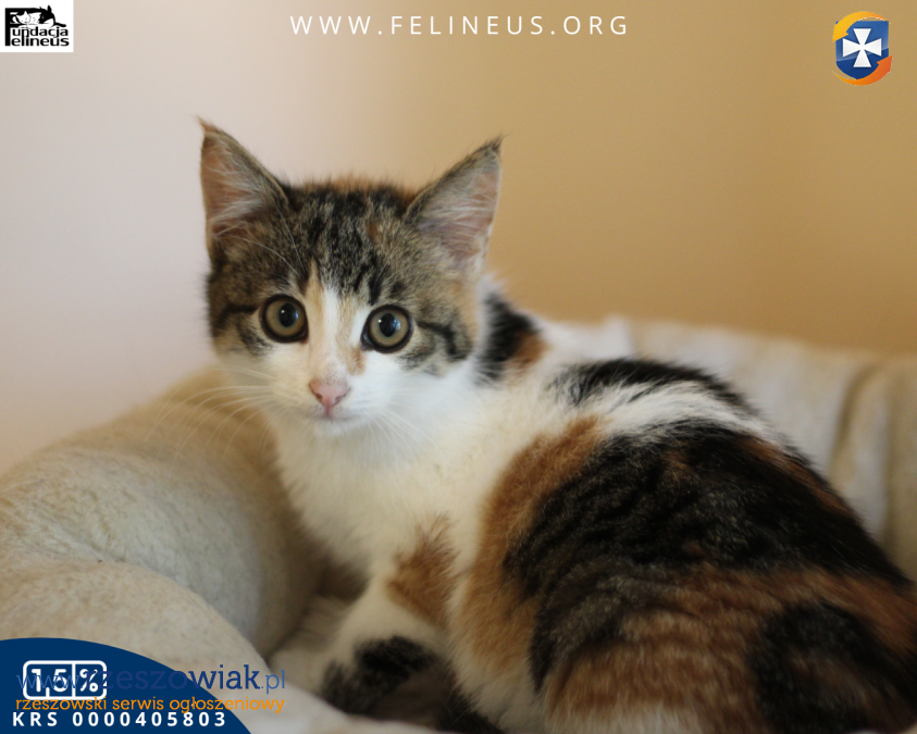 Sentino to malutka koteczka o puszystym futerku barwy trikolor. Kotka urodziła się we wrześniu 2025 roku. Jest nieśmiała i nieco płochliwa, ale z każdym dniem staje się coraz bardziej odważna. Dobrze się czuje w towarzystwie innych kotów. Chętnie bawi się z siostrą. Dla tej kociej dziewczynki szukamy domu gdzie opiekun uszanuje jej niezależność i da czas na aklimatyzację i przyzwyczajenie. Wskazane zabezpieczenia okien i balkonu.