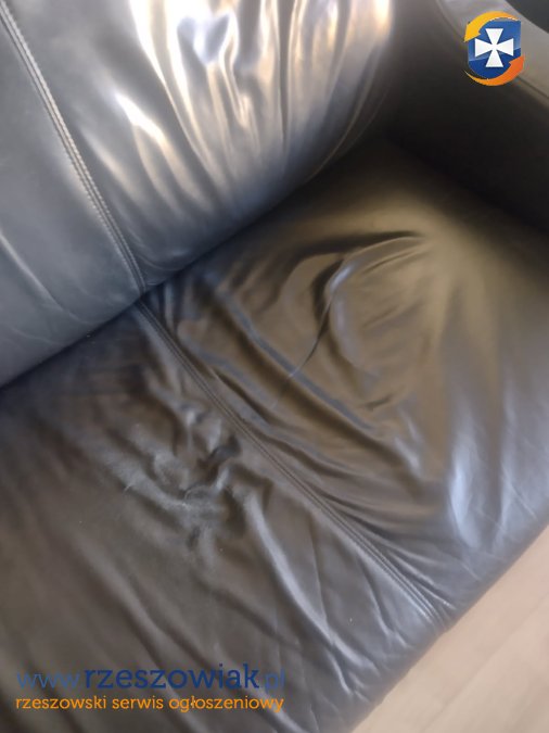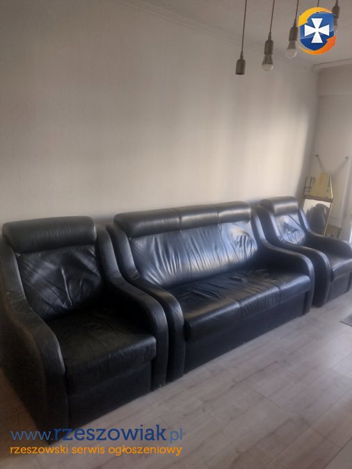 Skórzana sofa z dwoma fotelami w dobrym stanie. Ślady użytkowania na sofie, widoczne na zdjęciu. Sofa z funkcją spania. Meble są bardzo wygodne. Zapraszam do obejrzenia.