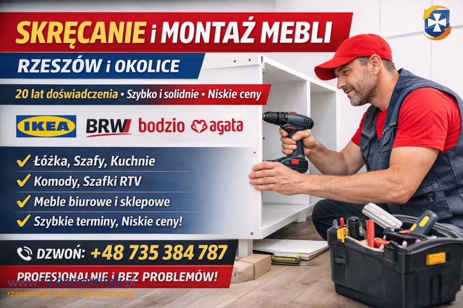 Oferuję profesjonalne składanie i montaż mebli u klienta.