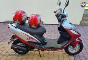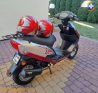 Skuter Romet Motors jak nowy .Przebieg 2600 km.Wszystko działa prawidłowo .Silnik czterosuwowy,nie trzeba robić mieszanek paliwowych.Nowy akumulator .Rok 2011.Dwa kaski gratis .Ważny przegląd i ubezpieczenie.