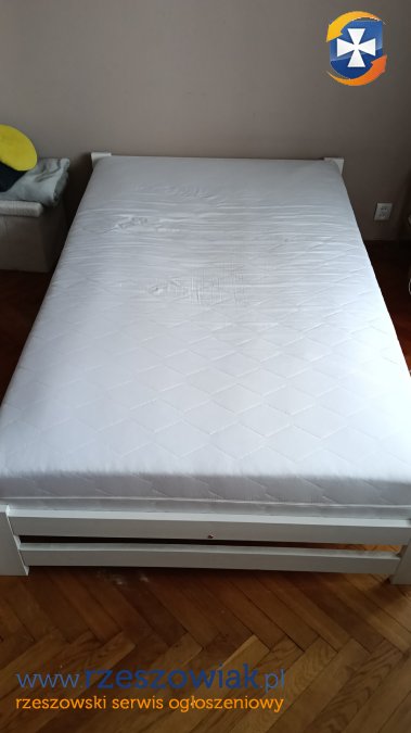Solidne białe łóżko stelarzowe z materacem. Wymiary łóżka to około 200 cm długości i 120 cm szerokości. Materac jest w dobrym stanie H2/H3. Łóżko W dobrym stanie używane około 10 miesięcy Idealne rozwiązanie dla osób poszukujących niedrogiego, funkcjonalnego mebla do sypialni.