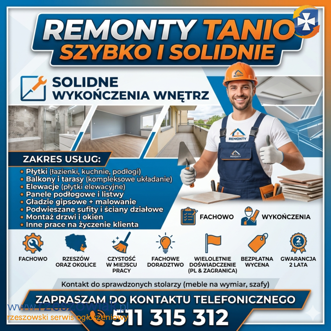 Szukasz rzetelnej ekipy do wykończenia swojego mieszkania lub domu Oferuję kompleksowe usługi remontowe z dbałością o detale i terminowość