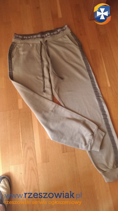 Spodnie dresowe nowe, nie użyte ani razu, rozmiar z metki 42 (wg. mnie 40 ), kolor subtelny butelkowy, ładny ciekawy fason , wzdłuż boków szersze zielone ciemniejsze lampasy, kieszenie wpuszczane, ciekawy dresowy fason. Dobrze się prezentują, dobra jakość.
