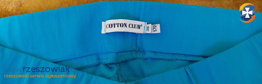 Spodnie marki Cotton Club w kolorze turkusowym, wykonane głównie bawełny. Bardzo mało używane. Rozmiar 36.