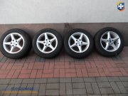 Sprzedam 4 kompletne koła na alufelgach od VW Passata 1,9TDI. Rozmiar 195 x 65 x 15 . Rozstaw otworów 5 x 112. Otwór centralny 57mm. Do tego komplet szpilek. Opony Dębica Passio, bieżnik 6 do 7 mm.