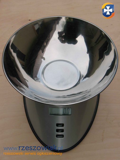Sprzedam austriacką elektroniczną wagę kuchenną o udźwigu maksymalnym 5 kg i dokładności 2 g. Niezwykle pomocna przy przygotowywaniu dań wymagających ściśle określonych proporcji produktów. Pozwala na precyzyjne zważenie nawet niewielkich ilości produktów. Waży również w uncjach i funtach.